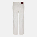 Elevate your wardrobe with the Gucci Cropped Flare pants, a sophisticated staple for the modern fashionista. These pristine white trousers offer a perfect blend of classic style and contemporary flair. Crafted with meticulous attention to detail, they feature a high-waisted design that flatters the figure and elongates the legs. The cropped length and subtle flare at the hem add a touch of retro-inspired charm, making these pants versatile enough for both casual and dressier occasions. Constructed from a premium fabric, they promise comfort and durability without compromising on style. Notable details include the signature Gucci craftsmanship evident in the precise stitching, the sleek silver-toned button closure, and the subtle rivets on the front pockets. The clean lines and minimalist design make these Gucci Cropped Flare pants an ideal canvas for various styling options. Whether paired with a crisp blouse for a polished office look or dressed down with a trendy top for weekend outings, these pants offer endless versatility. The timeless white color ensures they'll remain a go-to piece in your wardrobe for seasons to come. Invest in luxury and style with these must-have Gucci Cropped Flare pants.