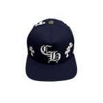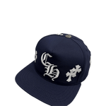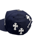 Chrome Hearts Leather Cross Patch CH Logo Snapback Cap Navy White
